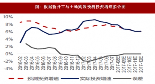 我们认为从构成角度预测开发投资额相对较为直接明了,但是缺点在于难以较好的估计新开工面积增速与土地购置费增速,其中涉及了开发商的在手土地储备与政府供应土地的意愿。而从资金层面来预测开发投资额相对来说影响路径不如构成法简单直接,从资金传导至投资还涉及库存、可开工面积以及开发商产能等因素的影响,但是资金增速方向的预测相对容易把握,同时对于投资结果的预测拟合度也较高。因此我们认为在实际预测中可以结合上述方法,做综合考量。综上所述,我们判断2018 年开发投资额增速约为4%。