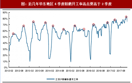 图:近几年华东地区4季度粉磨开工率高点要高于2季度