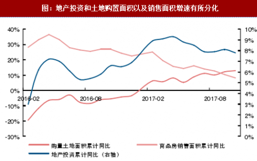 图:地产投资和土地购置面积以及销售面积增速有所分化