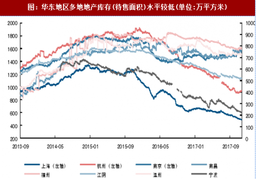 2)华东地区一二线城市较为集中,因此受棚改回落影响小,同时更低的库存水平也意味着2018年的地产投资及新开工的动力可能更强;
