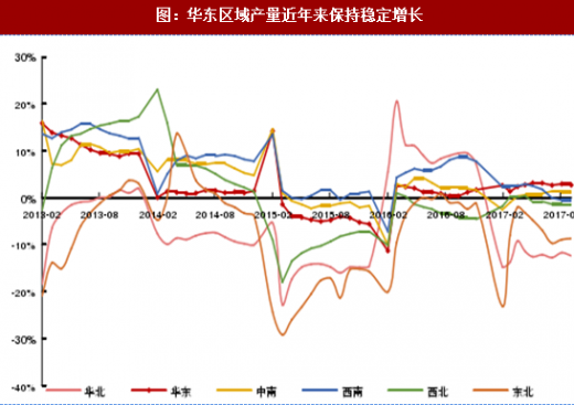 图:华东区域产量近年来保持稳定增长