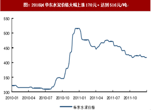 图:2010Q4华东水泥价格大幅上涨170元。达到516元/吨