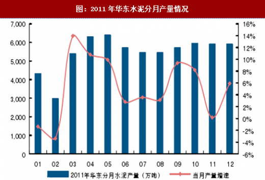 图:2011年华东水泥分月产量情况