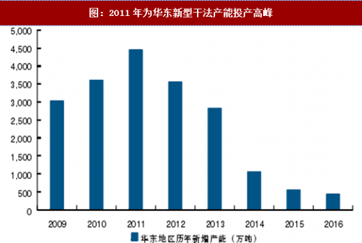 图:2011年为华东新型干法产能投产高峰