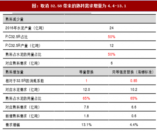 图:取消32.58带来的熟料需求增量为4.4-13.1