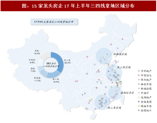 在三四线的土地获取集中度大幅提升, 17年龙头企业在三四线特别是换三大经济区的三四线 城市土地竞争十分激烈,土地价格抬升的速度同样超过该区域房价的上涨幅度。按照地产企业传统的盈利规则,在限制政策较少的区域,可以获得更高的周转率及利润水平,预计18年三四线城市市场依然会是房企竞争的第二主战场。