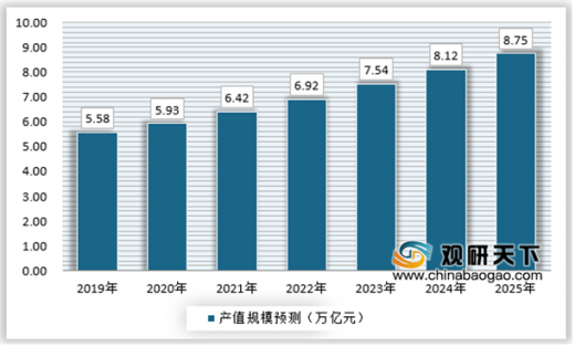随着市场的发展,我国建筑装饰装修行业企业数量不断增加,其带动的产值规模也将不断增长,预计到2025年其产值规模将达到8.75万亿元。
