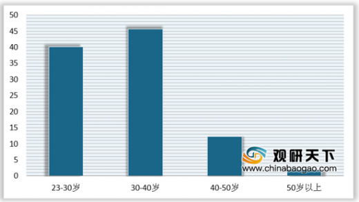 在对年龄调查中发现,我国室内设计师主要以30-40岁及23-30岁两个年龄区间为主,占比分别为45.63%、40.08%,40-50岁设计师占比为14.28%。