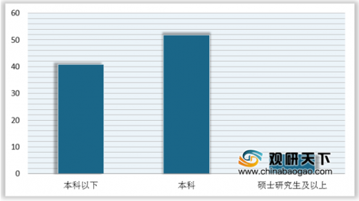 在关于学历的调查中,由于室内设计对学历的设限门槛不高,硕士及研究生以上的群体不多,仅占7.38%。本科学历占比最多为51.84%,其次是本科以下的占到40.78%。