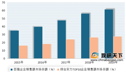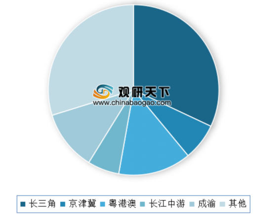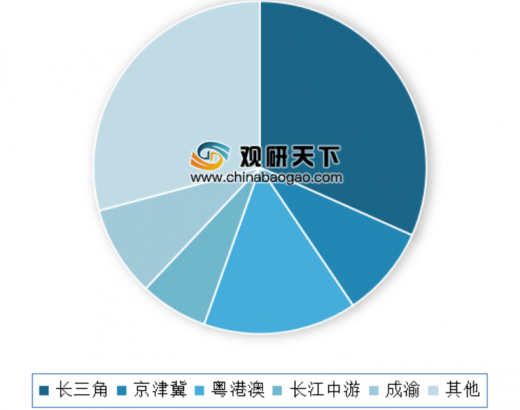 从区域来看,2019年我国百强企业聚焦长三角、粤港澳大湾区、京津冀城、成渝城市群等五大核心城市群。数据显示,2019年在50 家百强代表企业销售结构中,五个主要城市群的销售贡献占比为 70.8%。其中,长三角销售占比最高达 31.7 %,较上年下降 0.3 个百分点;其次为粤港澳大湾区、京津冀城、成渝城市群,其占比分别为14.9 %、 8.9 %,8.8%。