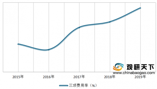 但三项费用率方面,受融资环境偏紧等因素影响延续上升态势。数据显示,2019 年,我国房地产百强企业三项费用率均值较上年增加 0.5 个百分点至 11.3% 。此外由于市场进入深度调整期,我国百强企业周转率略有下降,总资产周转率均值、存货周转率均值分别为0.26%、0.35%,较上年均下降 0.01 个百分点。