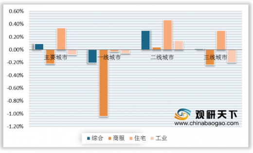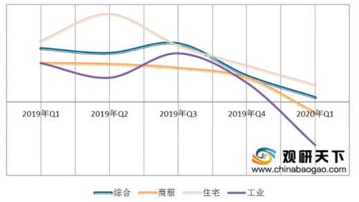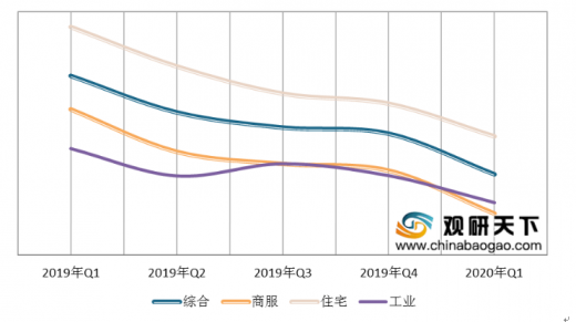 从我国各线城市来看,2020年第一季度,我国一线城市各用途地价环比下降,同比则均为正向增长;二线城市各用途地价环比、同比增速放缓;三线城市商服和工业地价环比下降,住宅地价则正向增长。