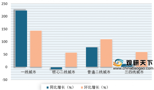 成交方面,数据显示,2020年4月,我国200城土地成交合计规划建筑面积18265.7万平米,同比下降15%,环比增长65%。其中一线城市成交合计规划建筑面积479.6万平方米,同比增长303%,环比增长174%;核心二线城市成交面积为2102.9万平方米,同比下降22%,环比增长55%;普通二线城市成交面积为4273.2万平方米,同比增长48%,环比增长97%;三四线城市成交面积为11410万平方米,同比下降28%,环比增长55%。