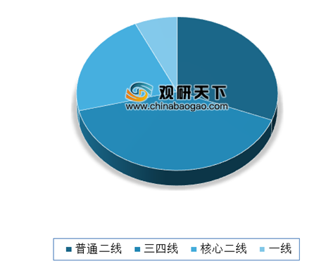 从各等级城市来看,房企倾向于二线城市及热点三四线城市。数据显示,在2020年1-4月,我国一线城市拿地面积占比为7%;核心二线城市拿地面积占比22%,较2019年同期增加了5个百分点;普通二线城市拿地面积占比31%;三四线城市的拿地面积占比40%。