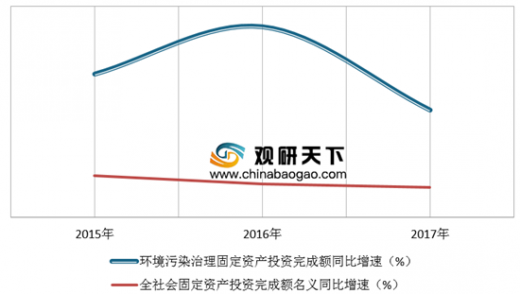 随着各地对环保政策的快速响应,环境污染治理固定资产投资完成额保持了高速的增长。数据显示,到2017年我国环境污染治理固定资产投资完成额增速达到了25.3%。