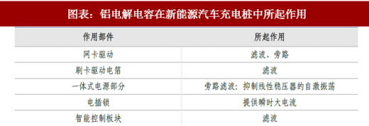 另一方面新能源汽车带动充电桩数量增长,普通充电桩一般需要7-8个电容器,快速充电桩电容器需求量更大,我们预计未来两年,充电桩有望保持 30%以上增速,对电容器需求量不容小觑。