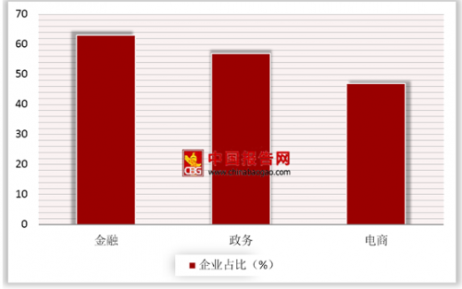 根据2017年大数据产业地图的统计,为金融、政务、电商三个行业提供大数据产品和解决方案的企业最多,分别占比63%、57%、47%。