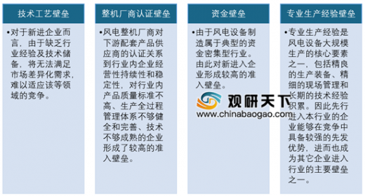 从海上风电零部件行业来看,由于海上风电技术目前主要由西门子集团、Vestas、通用电气等少数全球大型风电厂商垄断,其产品的高技术标准和工艺要求决定下游配套厂商存在较高的行业准入壁垒,对配套厂商的图纸消化能力、技术转化能力、质量和工艺改进能力以及限时供货能力均有较高的要求,一旦建立合作即形成较高的合作黏性,由此导致行业准入壁垒日益提高。
