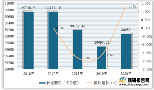 数据显示,近五年来我国水稻播种面积有所下滑,但整体维持在3000万公顷以上,对于水稻种子的需求仍强劲。数据显示,截至2020年我国水稻播种面积为30080千公顷,同比增长1.3%。