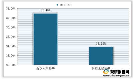 我国水稻种子行业竞争较为激烈,行业集中度较高。数据显示,在杂交水稻种子市场中,CR10为37.46%;常规水稻种子市场中,CR10为33.92%。