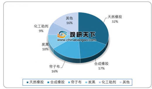 轮胎的主要成本构成为天然橡胶、合成橡胶、帘子布、炭黑、化工助剂及其它, 其中天然橡胶和合成橡胶的成本占比较大,因此橡胶价格的波动对轮胎价格及成本影响较大。