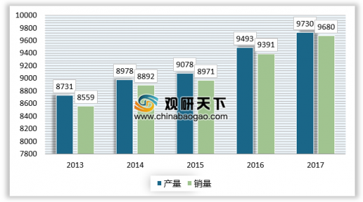 从全球汽车市场来看,2017年,全球汽车销量9,680万辆,同比增长3.14%。其中欧盟27国与欧洲自贸区销量1,814.76万辆,同比增长3.30%;北美自贸区销量2,123.16万辆,同比下降1.24%;中国销量2,887.90万辆,同比增长3.04%。从产量来看,2013-2017年全球汽车产量从8731万辆增加到2017年的9730万辆。增长近1000万辆。而2013-2017年中国汽车产量增长超过500万辆。中国汽车产量在全球产量中居首位。