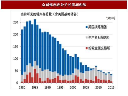 新增矿山储备不足,短期内难以实现贡献。展望2017-2026年,全球潜在锡矿山项目集中于澳大利亚和俄罗斯,但5,000年产量以上的规模化矿山仍然较少;同时由于近年来锡价持续处于低迷状态,相关矿山的勘探和开发进度并不乐观,预计2017-2018年全球规模化投放矿山仅有中国内蒙古地区约6,000-7,000吨左右的规划年产量。