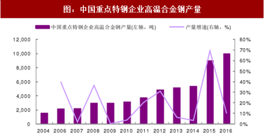 高温合金是指以铁、镍、钴为基,能在 600℃以上的高温及一定应力作用下长期工作的一类金属材料。高温合金主要用于制造发动机,未来中国需求将持续增加。运用高温合金的发动机主要包括航空发动机,飞机、舰艇发动机工业燃气涡轮发动机等。受益于中国“北斗计划”、“嫦娥计划”和“中国空间站计划”等,中国未来航空发动机的需求将持续增加。预计未来高温合金的持续放量有望带动钴的整体需求。2014 年高温合金钢产量为 4500 吨,2016 年接近 1 万吨,两年产量翻倍。