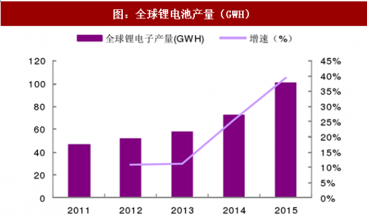 钴广泛应用于手机、照相机、电脑等电子产品以及新能源汽车电池材料。我国已经成为全球最大锂电生产国。2015 年全球锂电池产量为 100.75GWH,同比增长 39.4%;中国锂电池产量为 47.13GWH,同比增长 54.78%。