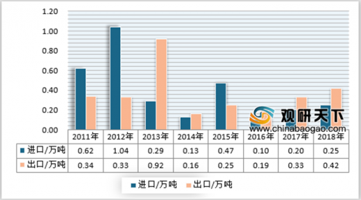 进出口方面,产量方面,随着国内磁控溅射靶材技术的成熟和高纯铝生产技术的提高,我国靶材生产有相对的低成本优势。过去典型靶材种类之一——高纯铝仍主要依赖进口;但随着国内高纯 铝 的产量逐年增加,从2011-2016年进出口量的差距一直在缩小,2013、2016、2017、2018年高纯铝出口量超过进口量。