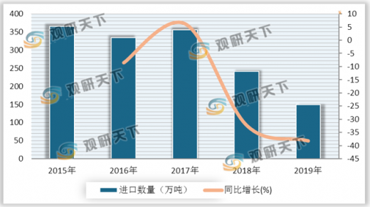 近年来中国废铜进口数量大幅下降,2018年中国废铜进口数量为241万吨,同比下降32.2%;2019年为149万吨,同比下降38.4%。