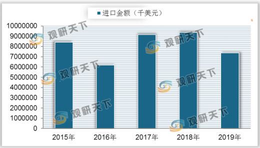 2019年中国废铜进口金额有所下降,为73.75亿美元,同比下降21%;2018年中国废铜进口金额为93.53亿美元,同比增长2.1%。