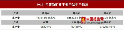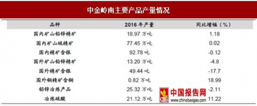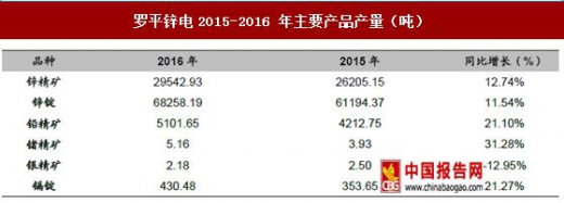 2016 年,公司全年完成出矿量 232.93 万吨,较去年提高 53.03%;完成选矿处理量222.43万吨,较去年提高 47.33%;精矿产品金属量完成13.01 万吨,较去年提高 38.45%, 其中完成铅金属量 5.35 万吨,比上年提高 35.79%;完成锌金属量 7.41 万吨,比上年提高 40.45%;完成铜金属量0.25 万吨,比上年提高38.24%;精矿银含量 82.14 吨, 比上年提高 48.38%。
