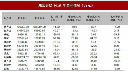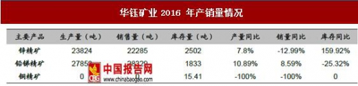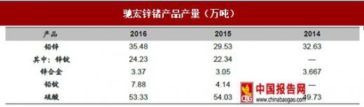 2016 年公司冶炼铅锌产品实际完成35.48 万吨,其中:锌锭24.23 万吨、锌合金3.37 万吨、铅锭7.88 万吨,硫酸53.33 万吨。销售量(自产)实际完成情况:锌锭23.73 万吨、锌合金3.36 万吨、铅锭7.73 万吨,硫酸47.26 万吨,扣除呼伦贝尔驰宏试生产产品产量,公司自产产品基本实现产销平衡,冶炼产品除黄金外均超计划完成。