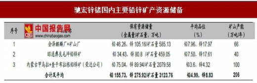 公司地处内蒙古地区,根据公司2016 年公告,公司为中国铅锌矿主要产地之一,锌资源储量全国占比13.5%,排名第二。2016 年公司铅精矿和锌精矿产量均位列全国前十, 旗下主要矿山内蒙古东升庙多金属矿在全国范围内具有较低的采选成本以及较高的盈利能力。公司凭借丰富的资源优势和较强盈利能力在采选企业中处于领先地位。但目前,公司控股股东建新集团因债务纠纷进行破产重整,增加公司发展的不确定性。