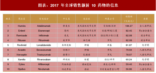 从过去几年全球药物销售排行榜中可以看出,销量前 10 的药物中,生物药的比例逐年上升。2017 年,7 种为生物大分子药,充分展现了市场对于生物药的认可。