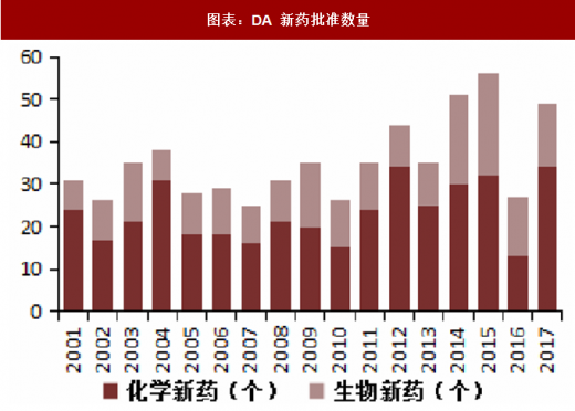 新药上市进度加快:从审评角度看,抗体药为代表的生物药处于产品上市爆发期。