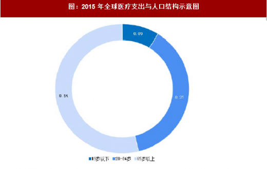 根据研究报告预计,到2050 年,将有33 个国家的60 岁以上老人超过1,000 万人,其中:中国4.37 亿、印度3.24 亿、美国1.07 亿、印度尼西亚0.7亿和巴西0.5 亿。而随着老年化趋势逐渐显著,与年龄相关的疾病也将会增加,这使得年长人群比青年人群需要更多的医疗看护。根据统计,65 岁以上的人群其医疗支出将占到医疗总支出的54%,而19 岁以下的青少年人群,其医疗支出仅占社会医疗总支出的9%。