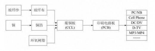 印制电路板(Printed circuit board,简称PCB)是组装电子零件用的基板,是在通用基材上按预定设计形成点间连接及印制组件的印制板。该产品的主要功能是使各种电子零组件形成预定电路的连接,起中继传输的作用,是电子产品的关键电子互连件。印刷电路板的制造品质,不但直接影响电子产品的可靠性,而且影响系统产品整体竞争力,因此印刷电路板被称为“电子系统产品之母”。印刷电路板产业的发展水平可在一定程度上反映一个国家或地区电子产业的发展速度与技术水准。PCB产业链如下: