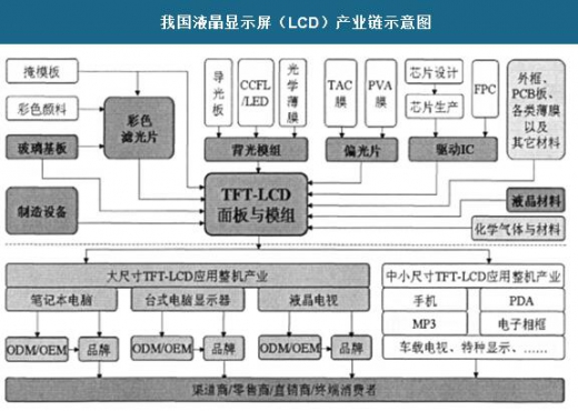 我国LCD产业跨越了化工、材料、半导体等多个领域,其产业链由上中下游构成,涉及上百种产品,且分别具有不同的特征。