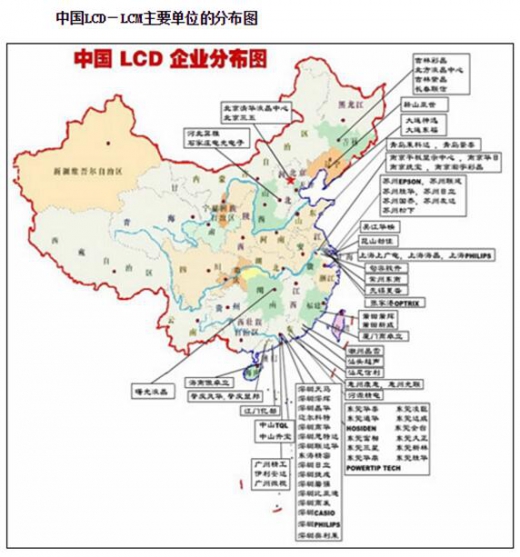 下游产业为终端产品的应用产业,其中主要是笔记本电脑、液晶电视、手机、监视器等生产企业,目前主要集中在中国大陆或正在大量向中国大陆转移。但产品品牌和研发等高端环节仍由日、韩、美跨国公司掌控。