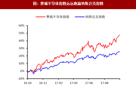 台湾半导体指数跑赢台湾加权指数。中国台湾是全球最大的晶圆代工基地,也是半导体Foundry专业代工模式最早的发源地,主要半导体企业包括台积电、联华电子、日月光、矽品、南茂、力成、旺宏、华邦电等。根据wind数据,2017年上半年台湾IC产业产值(包括IC设计、IC制造以及IC封装测试)为新台币1.144万亿元,同比下降0.13%,其中IC制造为新台币6268亿元,同比增长2.23%。