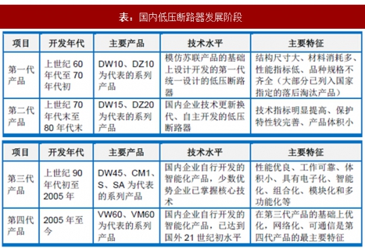新中国成立后,我国电器工业有了很大的发展,国内低压断路器大致经历了以下四代的发展阶段: