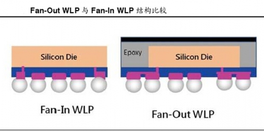 晶圆级封装(WLP):是整片晶圆生产完成后,直接在晶圆上进行封装测试,完成之后才切割制成单颗 IC,封装后的芯片尺寸等同晶粒原来大小。传统的 WLP多采用扩散型晶圆级封装(Fan-in WLP),但是伴随 IC 信号输出的接脚数目增加,衍生出扩散型晶圆级封装(Fan-out WLP)。