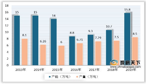 我国海绵钛行业经过近十年的调整,企业工艺技术和管理经验均有显著提高,已逐步向全流程、大型化和精细化方向发展。2019年,受国内原料供应紧缺所造成的原料价格上涨,以及高端钛市场需求的驱动,生产企业均新建、扩建和复产,产能大幅增长。据统计,2019年我国海绵钛产能为15.8万吨,同比增长47.7%;产量为8.5万吨,同比增长13.2%;产能利用率为53.8%。