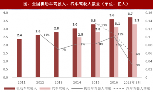 机动车及驾驶人数量增长:截至2017年6月底,全国机动车保有量达3.04亿辆,其中汽车2.05亿辆;机动车驾驶人达3.71亿人,其中汽车驾驶人3.28亿人,占驾驶人总量的88%。随着机动车保有量持续快速增长,机动车驾驶人数量也呈现迅猛增长趋势,近五年年均增量达2450万人。巨大的机动车及驾驶人增量反映驾驶培训的需求将更加旺盛,北斗高精度beplay下载软件 驾考驾培市场空间巨大。