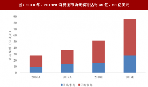 图:2018年、2019VR消费级市场规模将达到35亿、58亿美元