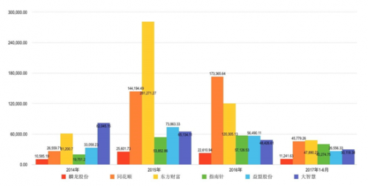 图:可比公司互联网金融信息服务收入比较图(单位:万元)