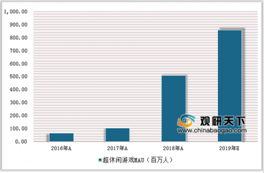 除了下载量,在月活规模和头部公司增长潜力上,超休闲这一品类同样表现出色。数据显示,超休闲游戏的月活规模预计在2019年将同比增长40%以上,达到8.6亿人,而2018年超休闲游戏的总计月活同比增长了接近4倍。