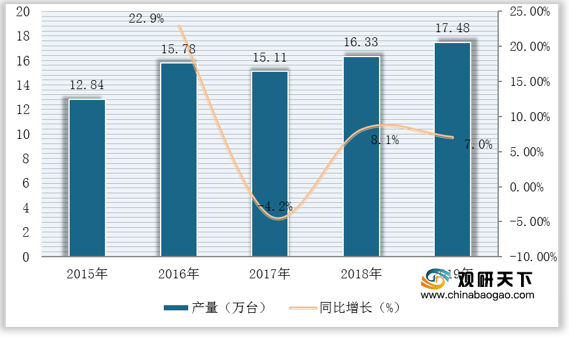 从供需情况来看,数据显示,近五年来我国吊秤产量、销售量呈波动上升态势,截至2019年我国吊秤产量为17.48万台,同比增长7%;销售量为16.65万台,同比增长17.4%。